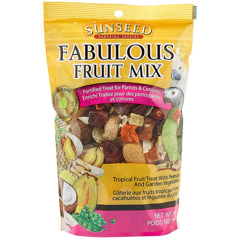 Delicious mixed fruit treat for parrots and conures blended with nuts and tasty garden vegetables. Specially formulated with the favorite fruits of parrot and conure companions, fabulous fruit mix is a perfect way to treat companions to the flavors they love and the nutrition they need. Extra fortified probiotics and DHA add support for healthy digestion and a strong immune system.