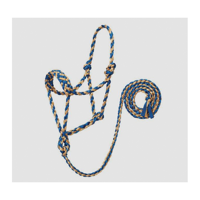 Ride The Brand Rope Halter with Lead, Polyester, Blue/Tan, Includes: 10 ft Lead