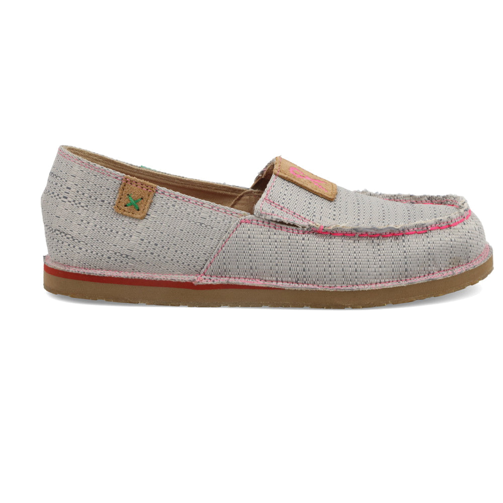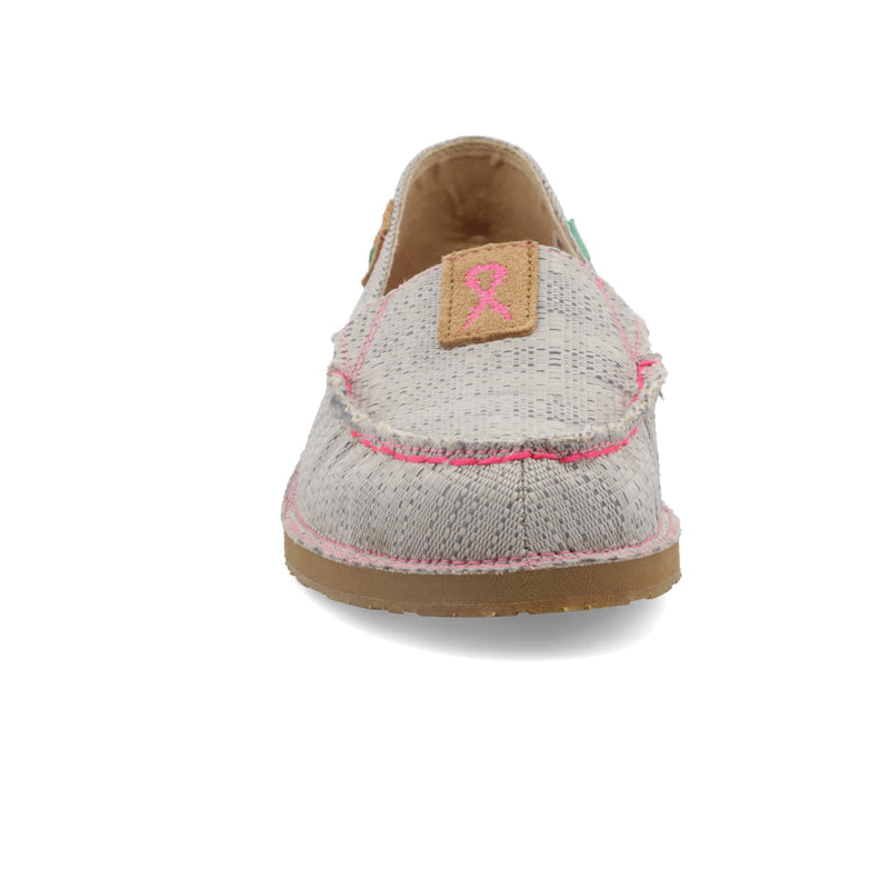 The Twisted X® Tough Enough to Wear Pink collection was created to raise support and awareness of breast cancer. In fact, a portion of every Tough Enough to Wear Pink shoe sold goes towards breast cancer treatment and research. The women's TETWP casual slip-on loafer is handcrafted with materials that create a fun and unique fusion of textures, colors and patterns. One of the lightest options available with all the comfort you've come to expect from Twisted X®. This slim profile shoe combines a moulded footbed on top of a full-length, dual-density EVA midsole and moulded rubber outsole. The casual loafers will keep you looking good and keep your feet wrapped in lightweight comfort.