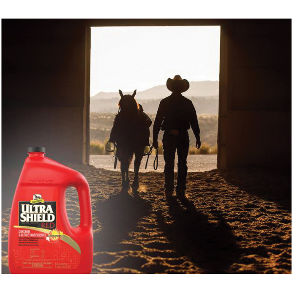 Featuring a unique combination of five active ingredients, UltraShield® red equine fly spray shields your horse from the torment of bugs with all weather repellency. This multi-active formula with five proven ingredients offers broad spectrum control for killing nuisance and biting flies, mosquitoes and ticks.
