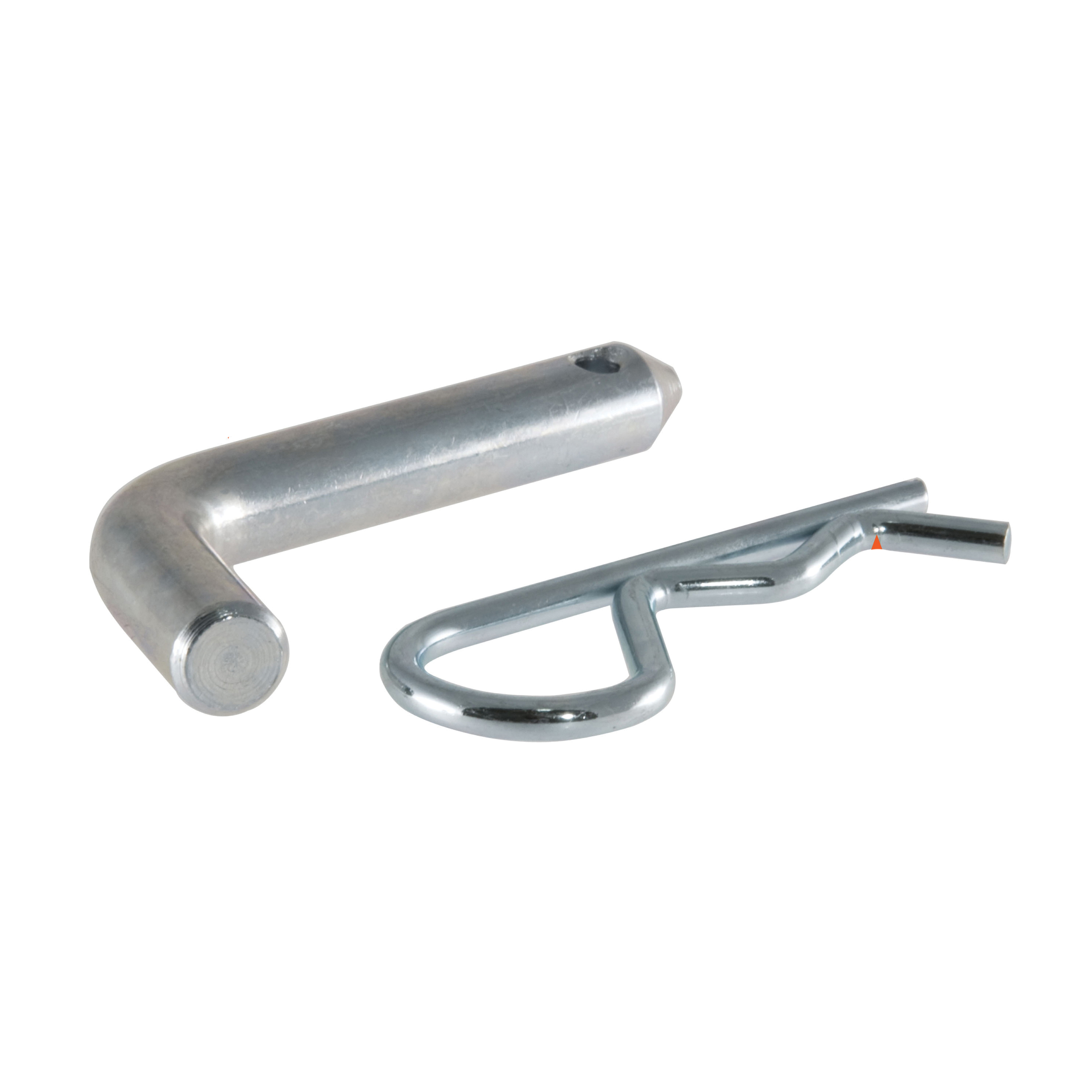 The job of a hitch pin is incredibly important in towing and for this reason, CURT hitch pins and clips are made to be of the utmost quality, providing you with reliable security for your trailer and cargo. CURT 1/2 in hitch pins measure a full 1/2 in Dia and are constructed from solid steel. This helps ensure they have the strength they need to serve your towing needs. This 1/2 in hitch pin features a zinc finish and comes with a standard retainer hole to accept the included clip. All CURT 1/2 in pins come with a 105 deg bend, making them easier to handle and operate when mounting your ball mount. 1/2 in hitch pins will fit any CURT ball mount or hitch-mounted accessory with a 1-1/4 in shank.