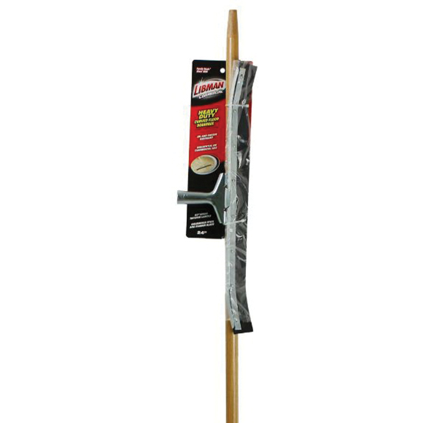 Libman 542 Heavy-Duty Floor Squeegee with Handle, 24 in Blade, Curved Blade, Rubber Blade, Wood Handle, Black