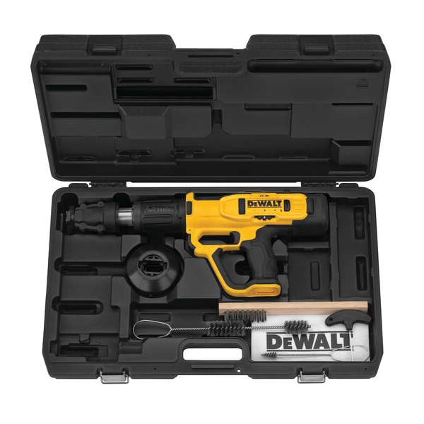 The DFD270 0.27 caliber fully-automatic powder actuated tool is designed for structural use in commercial steel and concrete applications. The nailer drives both 8 mm and 0.300 in head fasteners and clips in lengths of 1/2 in to 2-7/8 in, as well as 1/4 in threaded studs. It is powered by a standard 0.27 caliber (short) safety strip load. A power dial allows for adjustment within 0.27 caliber load colors. Tool-free disassembly allows for easy cleaning and maintenance. The DFD270 tool features automatic piston return and load indexing between fastenings, making it ideal for high-capacity commercial applications. With the addition of the DFD2703 Accessory Magazine, the tool can also fasten collated pins. Kit includes tool, magazine nose piece, single shot nose piece, cleaning kit, spall guard and kit box.