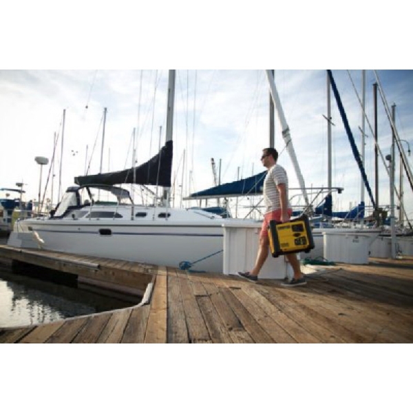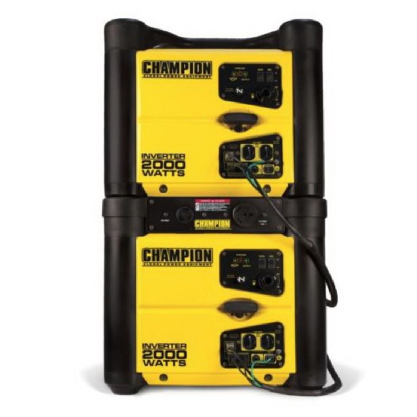 The Champion Power Equipment 73536i 2000 W portable inverter generator is the perfect combination of versatility and innovation. At only 48.5 lb, this inverter is ideal for camping or tailgating. Power items around the RV like lights or TV or provide backup power for a few basics like lights, microwave, TV, modem/router or phone charger. This unit is not recommended for emergency home backup for air conditioners, stoves, furnaces or sump pumps. Power up with the reliable recoil start, plus cold start technology ensures a quick start in cold weather. Featuring a patented, space-saving stackable design, this Parallel Ready inverter can connect with another Champion 2000-watt inverter for 30 amps of power. The optional Parallel Kit is designed to integrate seamlessly between two stacked inverters and comes with a standard 30 A RV outlet. The reliable 80cc Champion engine produces 2000 W starting , 1700 W running and up to 9.5 hrs run time at 25% load when the 1 gal tank of gasoline is full. Including two 120 V 20 A household outlets (5-20R) and a 12V DC outlet with battery-charging cables, this inverter operates at 53 dBA from 23 ft about the same noise level as a dishwasher running in the next room. Champion's inverter technology includes smart Economy Mode, which can reduce the electrical load, providing quieter operation, extended engine life and better fuel economy. Confidently connect your sensitive electronics since this inverter produces Clean Power (< 3% THD). Designed for safety with a low oil shut-off sensor, this inverter has a 0.4-qt oil capacity and comes with a bottle of 10W-30 oil so all you need to buy is the gasoline. Fully assembled with hassle-free setup, the built-in carrying handles make transport a cinch.