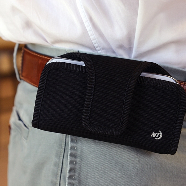 The Fits All phone holster is constructed from durable, rugged materials and keeps your phone securely attached to your belt or waistband with our patented, tough, flex clip. Featuring a hook and loop lid closure and available in either vertical or horizontal models, the FITS ALL phone holster is designed to keep you confident that your phone is secure and accessible no matter what you're doing.