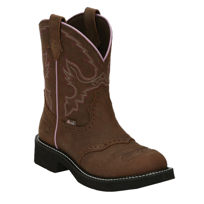Sleek and chic, the 8 in tall Gemma Justin Gypsy™ women's boot is ready to rodeo. The leather upper is accented by a delicate stitch pattern and is an unexpected pop of color that compliments the polished foot. The seam on the quarter and trim on the collar give this boot an elegant feel. Its round toe and unit heel provide an easy fit and the J-Flex Flexible Comfort System® insole with removable orthotic inserts add cushion and support in or out of the saddle.
