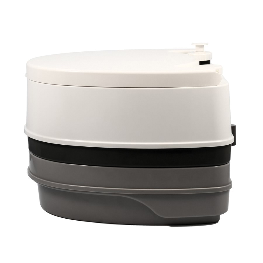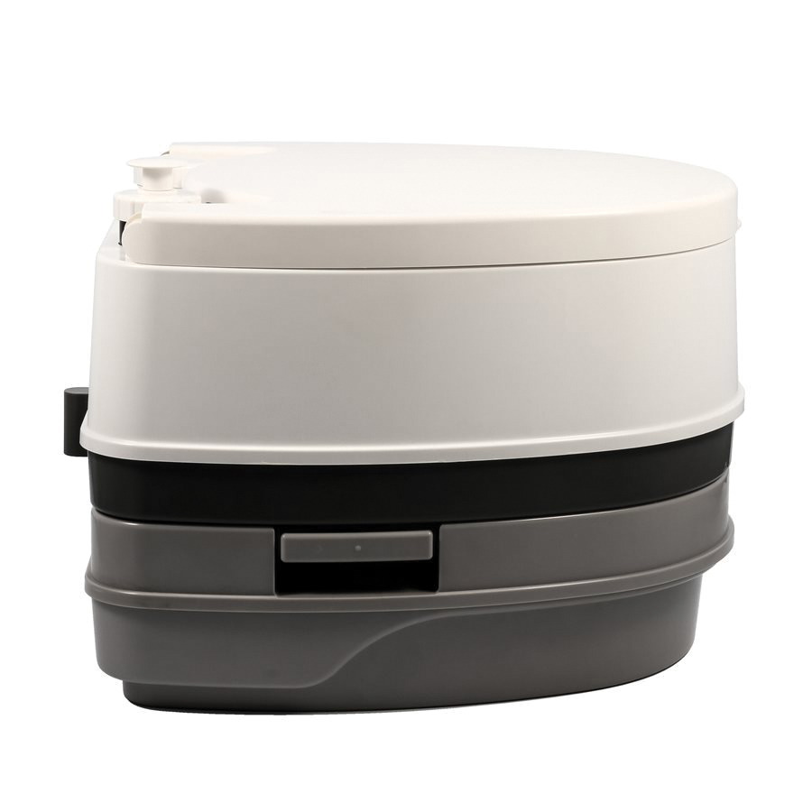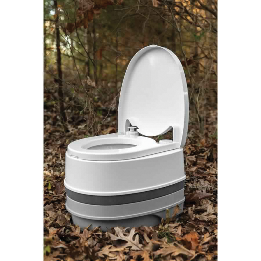 The Camco camping toilet is a durable, comfortable option for camping, hunting, road trips and boat trips. The top features a larger seat size than most competitors, with an increased bowl size. The fresh water holding tank utilizes a pump flush action to effectively rinse the bowl of the toilet. The 2.6 gal detachable holding tank seals firmly to prevent escaping leaks and odors. The interior of the holding tank has a slick surface to make waste removal easier and more efficient. Remove the flush tank one handed by toggling a single locking latch. The latch is spring-loaded for automatic re-attachment. The Camco camping toilet features a lid that can be latched closed for easier transport or completely removed for cleaning. It is made of durable ABS resin and will seal in unpleasant odors for an overall better camping toilet experience.