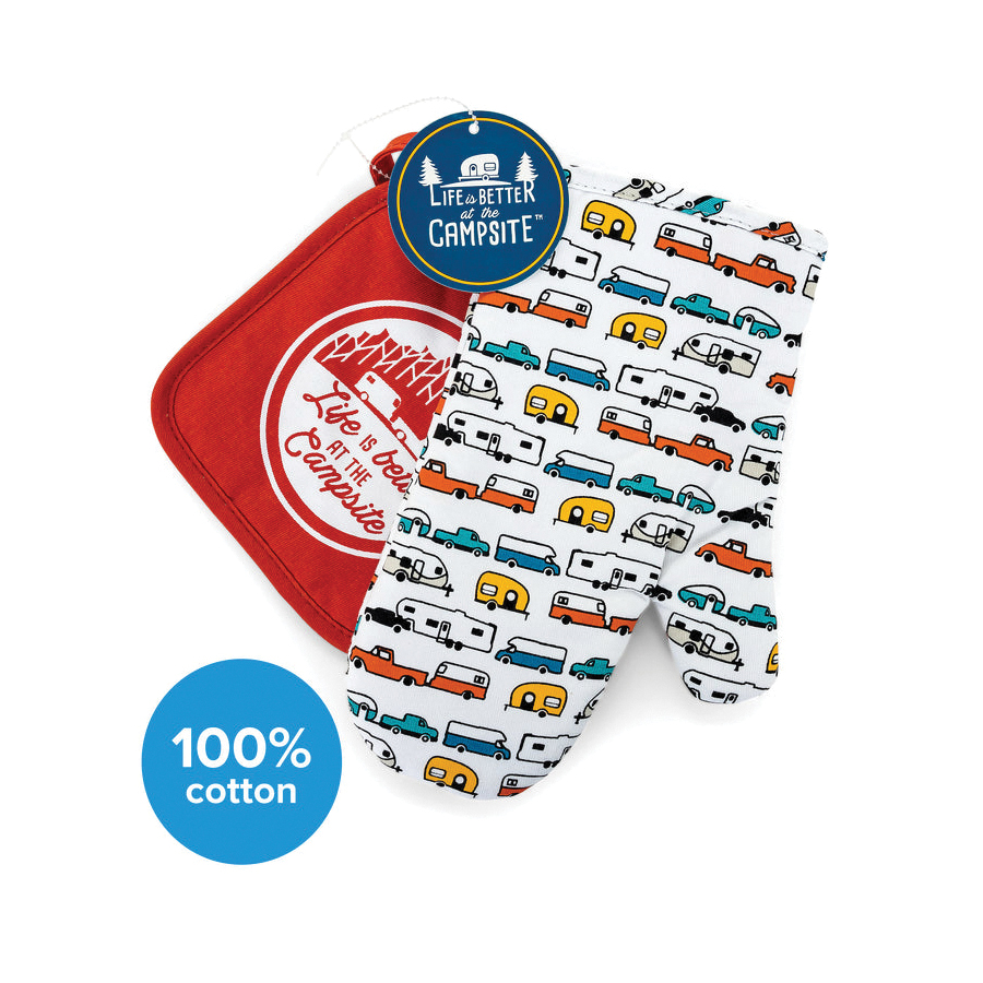Life is Better at the Campsite Oven Mitt, RV Pattern, Cotton, Resists: Heat, Includes: Red Pot Holder