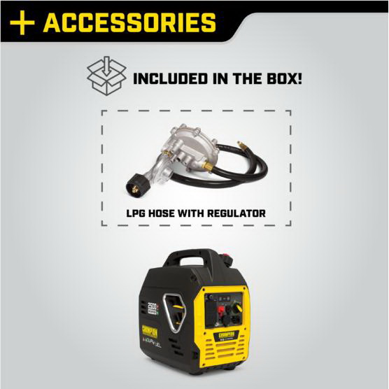 Includes | : | Engine Oil, Oil Funnel and Propane Hose |