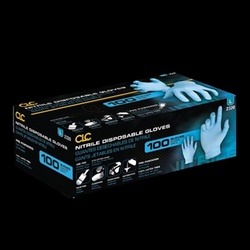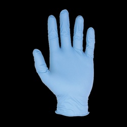 Blue nitrile disposable gloves, boxed. 4 mil industrial-grade with rolled wrist.