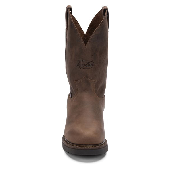 The balusters pull-on bay gaucho 11, 11 in tall J-Max® men's pull-on work boot features a rich brown leather exterior crafted for durability. It's built for comfort with the J-Max® Double Comfort System® that utilizes a mesh spacer foot bed cover that provides extra comfort and a healthy environment for the foot and the J-Max® removable orthotic inserts with J-Flex Flexible Comfort System® with Justin Jel® offers a multi-density polyurethane foot bed including low density foam to cushion initial impact and provide energy return as you walk. The encapsulated air cells to virtually eliminate compression set so the bounce of cushioned energy return is present for the life of the boot strategically placed polyurethane gel pads in the heel arch and ball area to reduce muscle fatigue for unparalleled comfort. This boot also features the Dri-Lex® cooling system that pulls moisture from the inside of the shoe, leaving the insole dry and cool as well as a durable dual density polyurethane slip-resisting outsole that meets ASTM F2892-11 for electrical hazard safety footwear standards. This style is proudly made in the USA with global parts.
