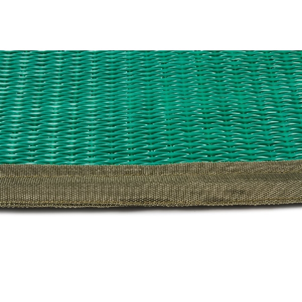 Camco green RV awning leisure mat is a 9 x 12 ft mat cleans easily with soap and water. Made of durable, mildew-resistant materials, with rust-resistant grommets and ground stakes included. Reversible woven design allows snow and rain to drain through mat. Help keep dirt from being tracked into RV. Also useful for picnics and beach outings.