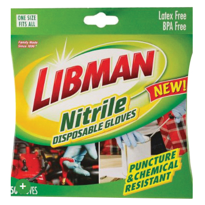 When sensitivity to latex is an issue and you need a power-free glove to use with sensitive skin, Libman Nitrile Disposable Gloves are an ideal solution. Whether your cleaning, gardening, painting or performing other tasks where you need to protect your hands simply, Libman Disposable Latex Gloves provide you with the protection you need. The lightweight design maximizes comfort and touch-sensitivity, while the beaded cuff provides an extra layer of durability.