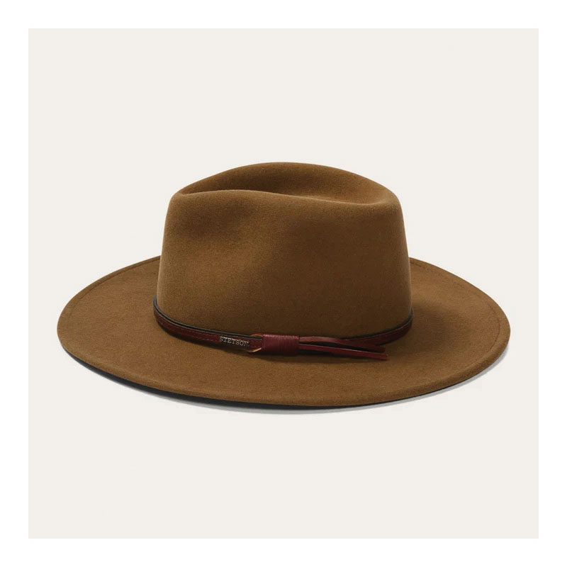 The Bozeman is a hat that speaks to the authenticity, adaptability and diversity of the American spirit. Designed for Outdoor adventures, this is a hat that will keep up with you on the trail, the ranch and beyond. Made from wool, its soft enough to roll-up ideal for packing on your next journey. Naturally water-resistant and featuring a large brim, the Bozeman offers plenty of protection from the elements. The pinch front crown is accented by a rich leather hat band, inside, a Drilex sweatband offers secure comfort, even on the most strenuous hikes. Lightweight and versatile, this is a hat for camping, fishing, exploring anywhere performance and everyday ease are key. The Bozeman is a highly practical choice and a rare match for any man or woman put one on to face the day with fortitude.