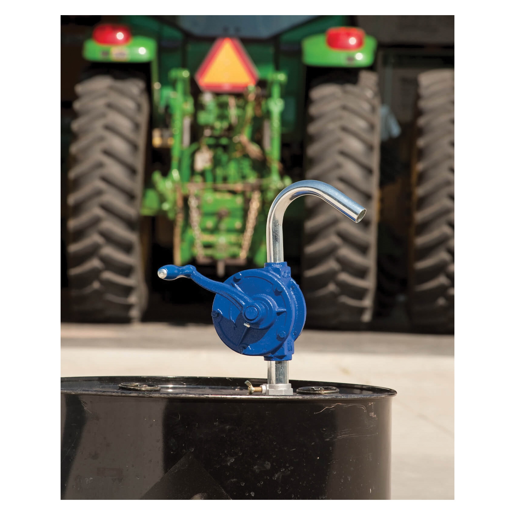 The GPI RP-5 fluid transfer pump is a light-duty rotary action pump designed to deliver up to 8 gal (30 L) per 90 revolutions for use with diesel, petroleum-based fluids, kerosene, light oil and hydraulic fluids. This hand operated transfer pump is not compatible with gasoline.