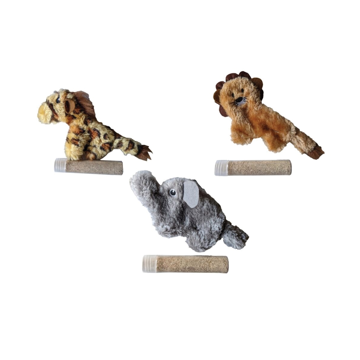 Silver vine is a natural material cats are intensely attracted to. Refillable toys feature an opening to insert fresh silver vine. Assorted styles.