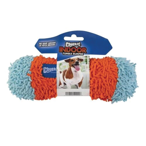 Bring fetch indoors with the Chuckit!® Indoor tumble bumper dog toy. Designed for active play that's easy on your home, the Indoor tumble bumper features Bounceflex Core Technology for a lightweight design that makes it soft when hitting a wall or furniture while still giving it just the right amount of bounce for indoor play. The unique shape makes it easy for dogs to pick up and carry or cuddle while the multilayer construction provides added durability for long-lasting use. Make Fetch Happen® indoors with Chuckit!® Indoor tumble bumper.