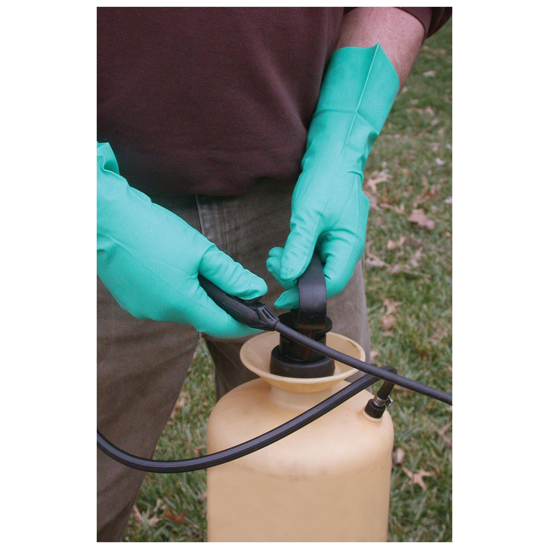 Boss HOME N' YARD Gloves, Gender: Men's, L, Glove Material: Nitrile, Green, Cuff Type: Gauntlet, Lined/Unlined: Lined, 13 in L, 18 mil Thick, Resists: Puncture