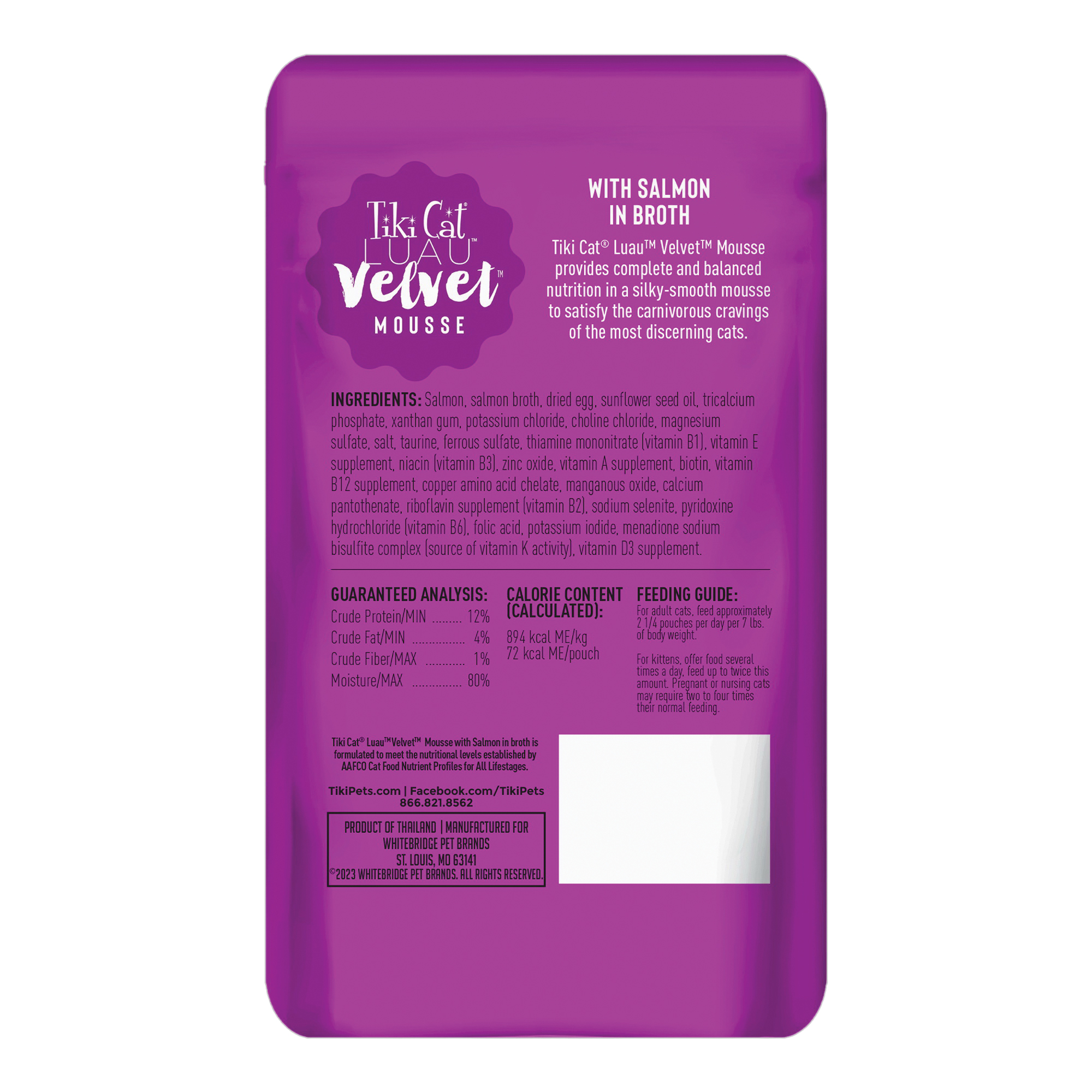 Nutritional Information | : | 72 kcal/pouch Calories, 12% Crude Protein, 4% Crude Fat, 1% Crude Fiber, 80% Moisture |