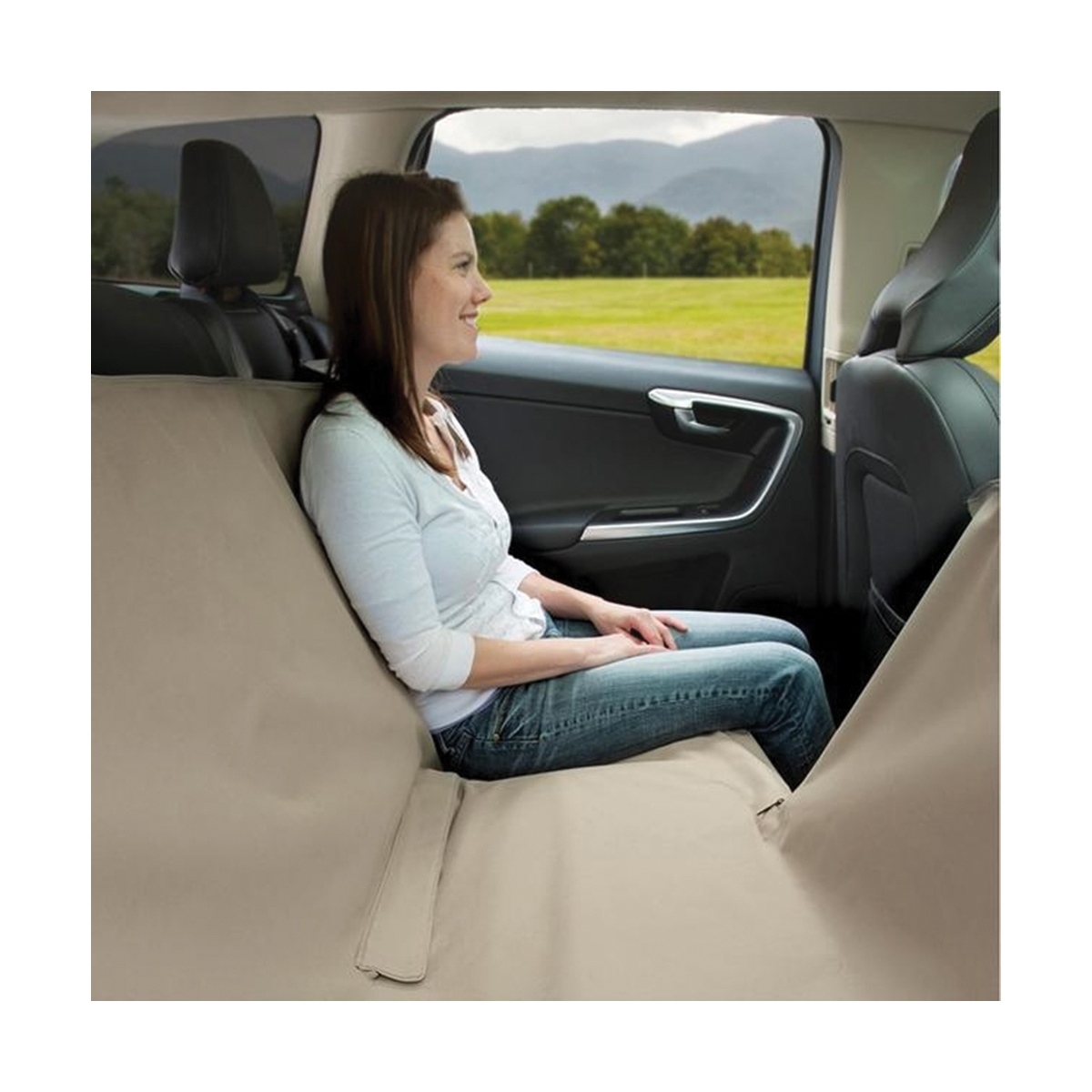 Suspended securely between the front and back seats, the Wander Hammock is a durable, waterproof barrier between your dog and any hope of automotive resale value. There are eight attachment points, for a secure fit and a center zipper allows you to fold down half, for those times you have a human passenger back there. Openings allow for both seat belts and car seats. Meanwhile, it blocks your dog's access to the front seat, keeping everyone safer.