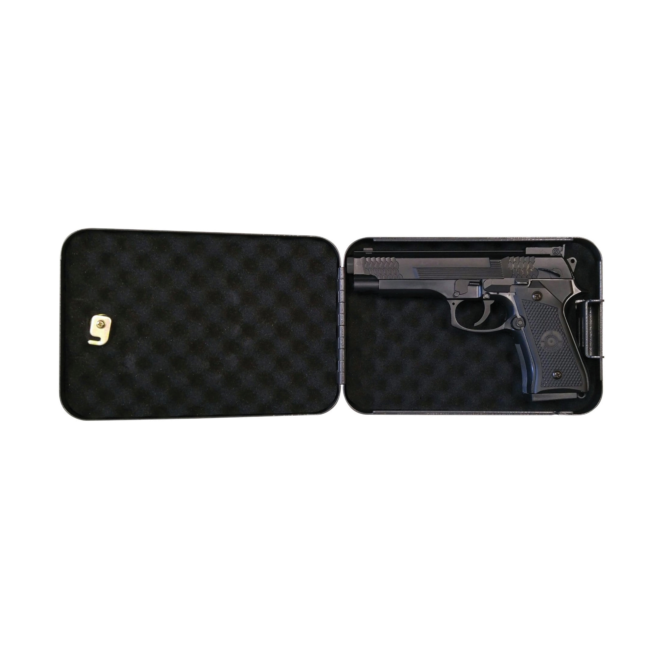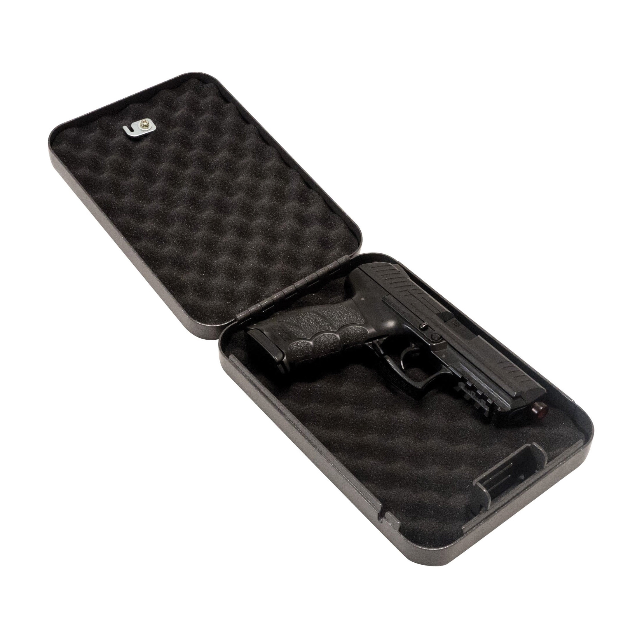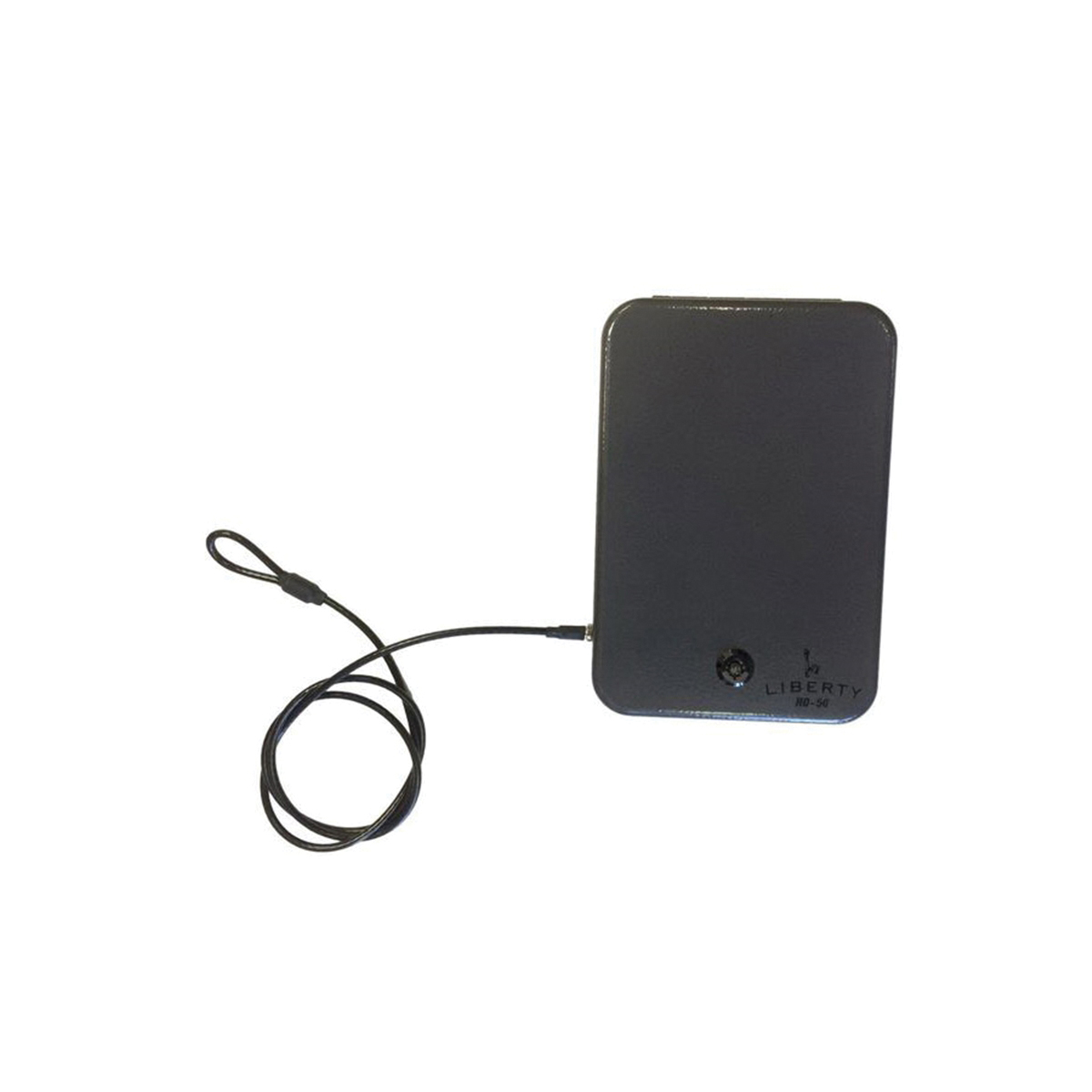 Small, portable and packed with security features, the HD-50 Key Vault makes it easy to take security on the go. Liberty introduces its most compact home defender key-vault at a very affordable price. Imported with exact specifications, the HD-50 key vault protects handguns, phones, wallets, passports, medications or other small valuables. The HD-50 is one tough vault yet conveniently portable! Each portable safe box comes with quick and reliable key access and includes a security cable for additional lock down security. Liberty engineers have designed extra anti-pry features into this key-vault design. The HD-50 is ideal for concealment underneath vehicle seats, desk drawers, nightstands, closet shelves and more. It is even TSA compatible for airline use. Size is just right where the HD-50 conveniently fits a standard 1911 as shown in the photos above. Liberty is known for quality of its home defender key vaults and stands behind the HD models by offering a two-year replacement warranty on any defects.