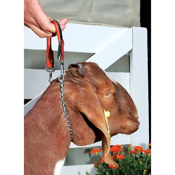 Weaver Leather Chain Goat Collar with Leather Handle, Link Type: Snap, Collar Width: 5/8 in, Collar Length: 24 in, Chrome