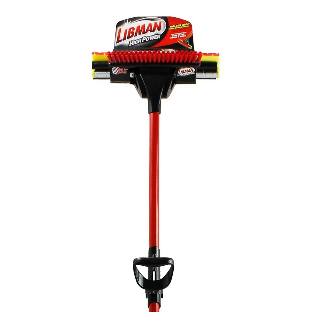 Libman 955 Roller Mop with Scrub Brush, 12 in W Frame, 52 in OAL, Sponge Mop Head, Quick Change, Steel Handle