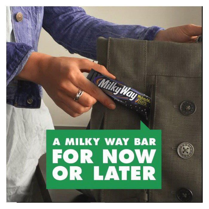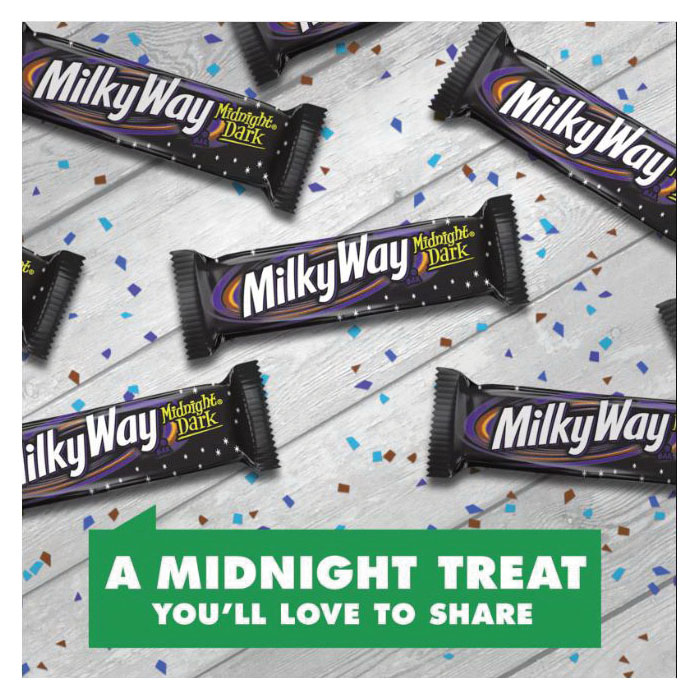 Dark chocolate lovers, rejoice. Milky Way midnight dark chocolate is the delicious caramel chocolate candy bar you love, enrobed in dark chocolate. Go ahead, get lost in the rich, delicious taste.