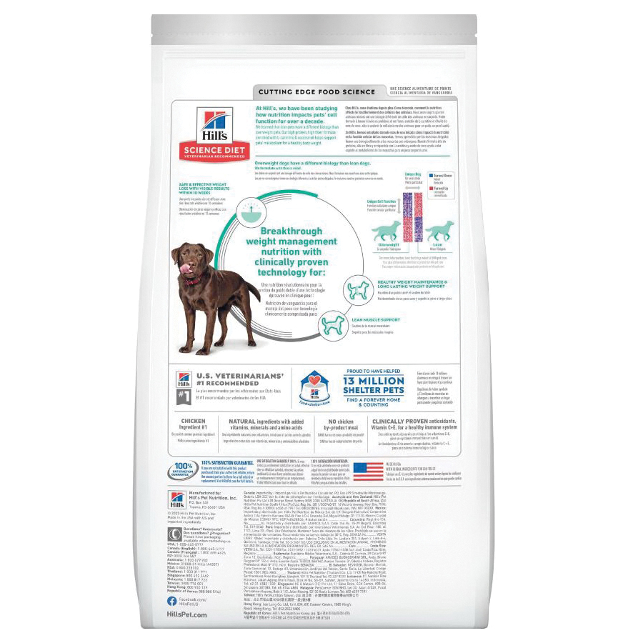 This weight management dog food was created with Hill's unique understanding of the biology of overweight dogs. Over 70% of dogs lost weight within 10 weeks with Science Diet Perfect Weight dry dog food and now it comes in a larger kibble for large breed dogs. Feed this breakthrough nutrition for your large breed dog's healthy weight maintenance and long-lasting weight support.