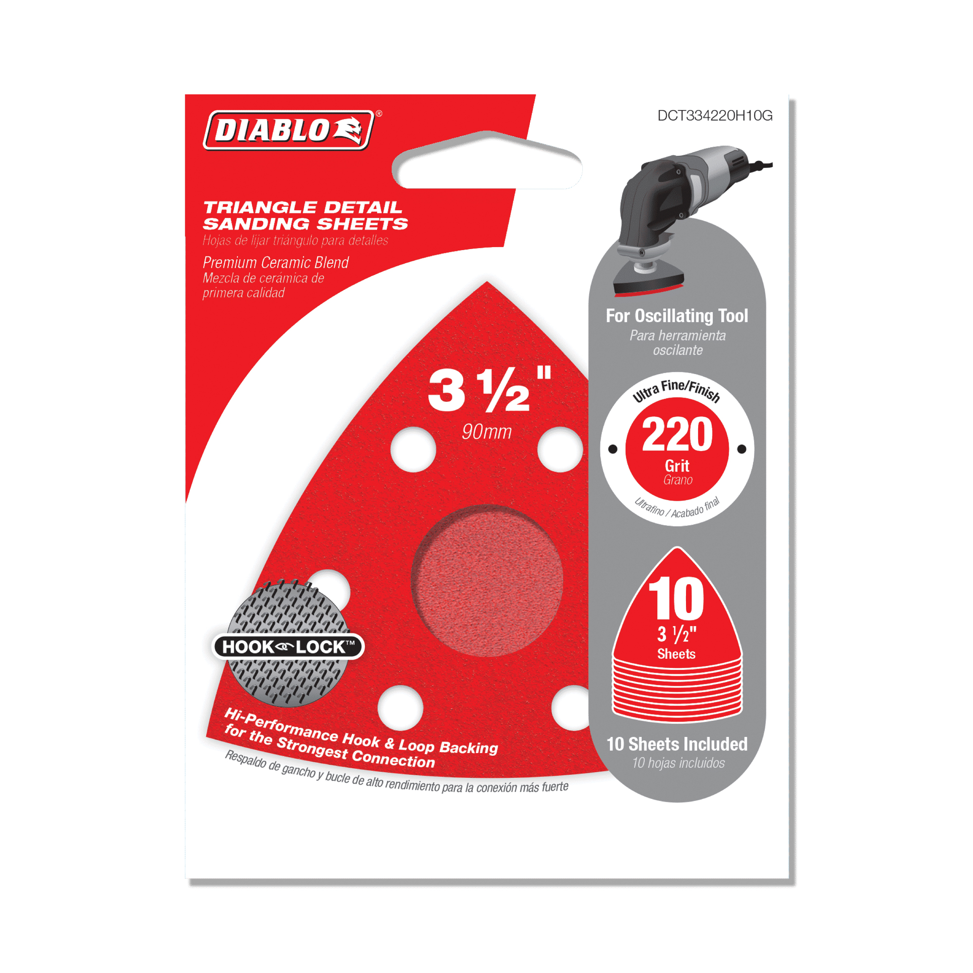 Diablo DCT334220H10G Triangular Sanding Sheet, 3-1/2 in W, 3-1/2 in L, 220 Grit, Ultra Fine, Ceramic Grain Abrasive