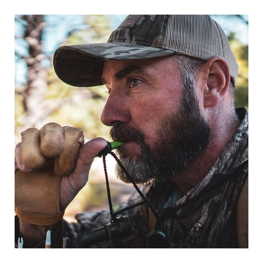 Cow Girl™ call is a "bite and blow" style call. A cow ELK's call is characterized by a note, sliding from a high note to a low note. The Cow Girl™ is one of the easiest ways to achieve the "sliding note" consistently. Squeeze the end of the Cow Girl™ for realistic inflections and volume control.