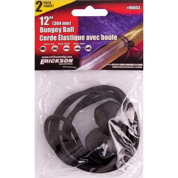 Erickson Bungee Ball, End Material: Plastic, Black, 6 in L, 1/8 in Dia, Includes: (2) Bungey Balls