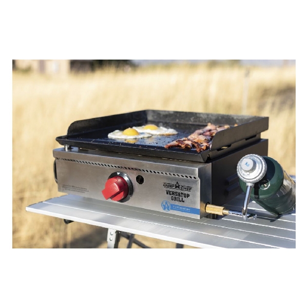 Discover the endless menu possibilities of VersaGrillity on your VersaTop. The VersaTop grill system is a handy 247 sq-in of flat top freedom. Equipped with Camp Chef’s true seasoned, non-stick surface it’s ready to cook when you are. For even more added convenience, the VersaTop is compatible with most Camp Chef 14 in accessories making it one of our most versatile flat top grills. Small in size, large in cooking capacity and perfect for those on the go.