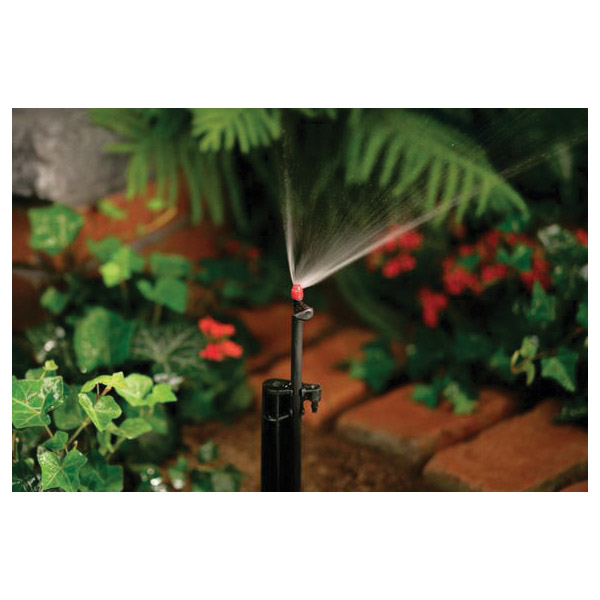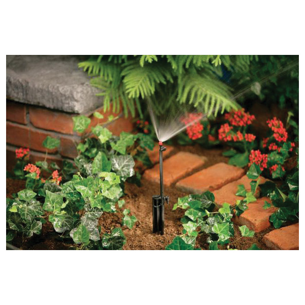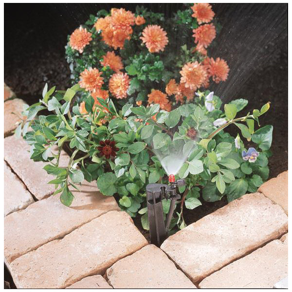 This low volume sprinkler head is an efficient and gentle way to water flower beds. The control knob adjusts water flow and spray distance. Easily threads on a 1/4 in riser or sprinkler stake.