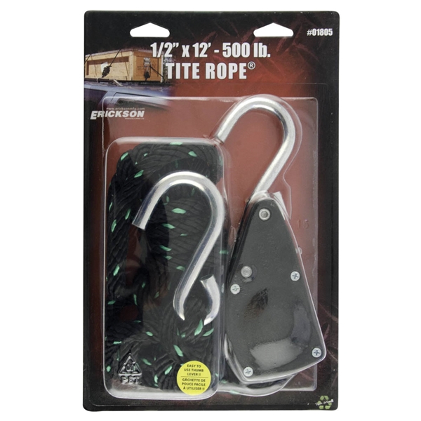 Erickson 01801 Tite Rope, 3/8 in W, 8 ft L, Polypropylene, Black, 250 lb Working Load