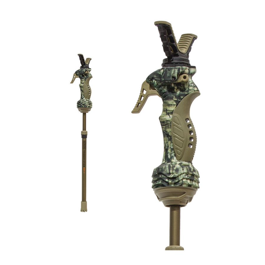Like every trigger stick, the new Primos trigger stick gen 3 adjusts to your desired height with just one hand and the pull of a trigger. The new quick detach yoke system with integrated lock makes it easier than ever to switch from gun to optics and back again. Smoother panning action helps you rotate, scan and find your perfect shot effortlessly. It's the next level of trigger stick to give you the next level of confidence in every shot in all terrain and dash, standing, sitting or kneeling. Our patented trigger stick has been upgraded to perform even better. By far its the quickest most effective shooting stick to give you solid shooting support. We have advanced our design by incorporating a quick detach yoke system that allows for easy transitions for a shooting stick to a smooth panning support for optics or cameras. The extreme leg angles give you the versatility of being able to set up quickly on any terrain from nearly any position. The Primos trigger stick gen 3 is the ultimate solution for making your shot accurate no matter where you are.