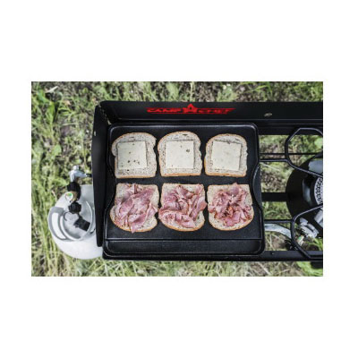 Versatility is important when it comes to outdoor cooking and the reversible cast iron grill and griddle can do it all. This cast iron grill and griddle heats evenly and holds heat well, making it easy to cook your food to perfection. Pre-seasoned with Camp Chef's true seasoned finish, this grill and griddle has a natural cooking surface that is ready to use out of the box.