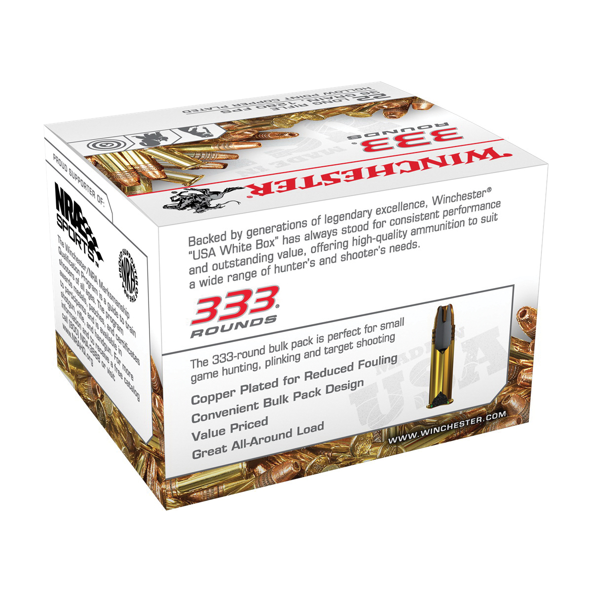 Backed by generations of legendary excellence, Winchester USA white box stands for consistent performance and outstanding value, offering high-quality ammunition to suit a wide range of hunter's and shooter's needs.