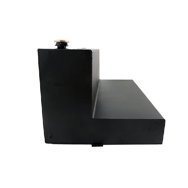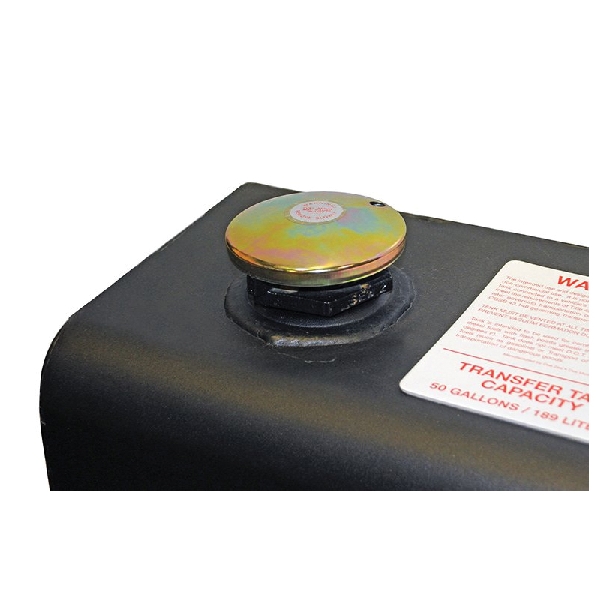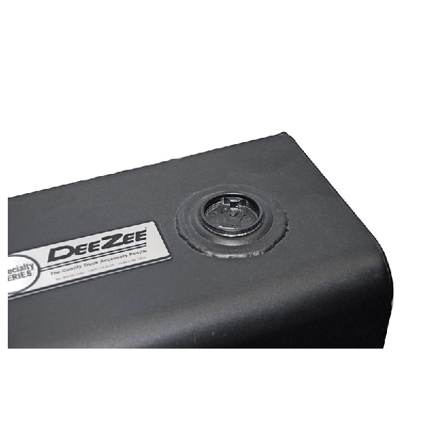 Dee Zee's L-shaped transfer tanks are forged out of rugged steel, protected by black NRT rust inhibitor powder coat finish for rugged quality that lasts. Dee Zee's L-shaped transfer tanks are constructed out of heavy-duty 14 ga steel with a radius curve design to eliminate key weld pressure points. Three internal baffles add stability by preventing fluid from sloshing around the tank when turning or stopping during driving. Hammerhead design with narrow base ensures the tank fits easily between wheel wells, tucking underneath your crossover toolbox saving some of your truck bed space for hauling cargo. A lockable cap keeps your tank content secure, while a 0.375 in drainage plug and venting coupler allow easy drainage of contents when needed.