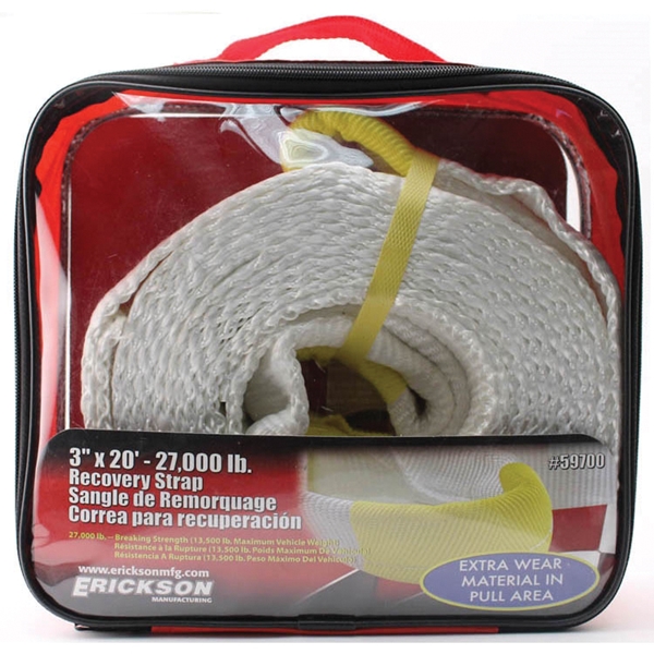 Erickson Recovery Strap, 27,000 lb Weight, Loop End, Nylon/Polyester, White, 20 ft Length, 3 in Width, Includes: Handy Storage Bag