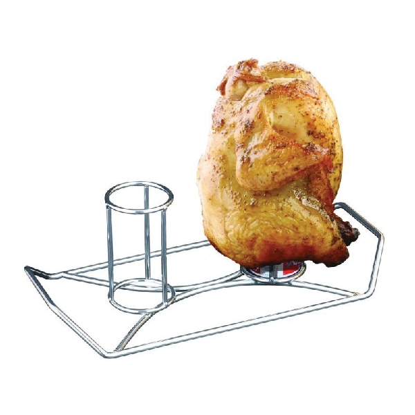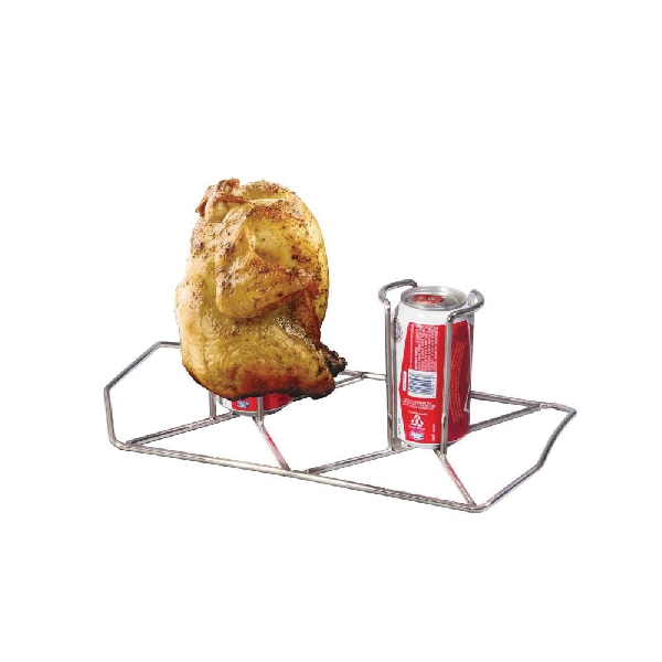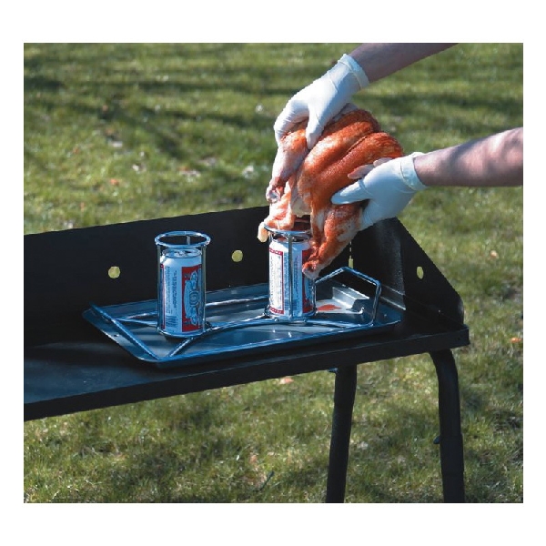 Two is a magical number. With the twins beer can chicken holder, you get double the cooking capacity for double the flavor. Simply place two cans of your favorite beverage in the holders, slide the chickens on top and wait for the magic. The steel base and side handles make this holder durable and easy to use. In just a short while, you'll be looking at two tender, juicy roasted chickens on your grill.