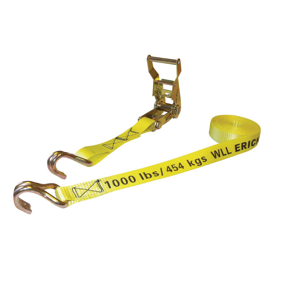Erickson Strap, Working Load Limit: 1000 lb, End Type: J-Hook, Adjustment Type: Ratchet, 15 ft L, 1 in W, Yellow, Breaking Strength: 3000 lb
