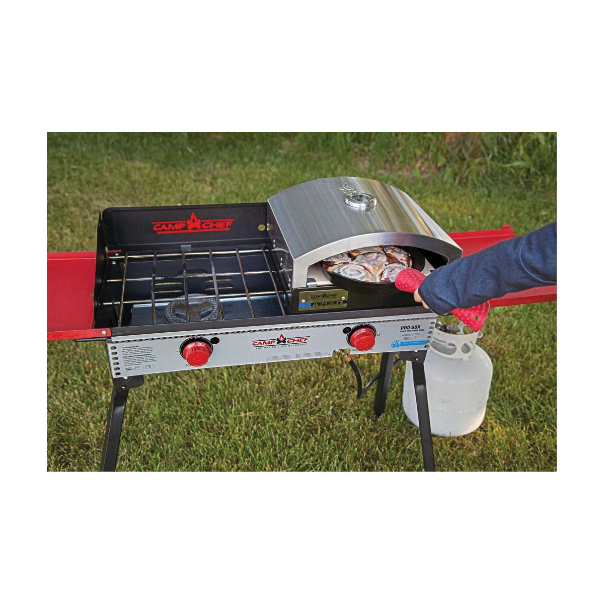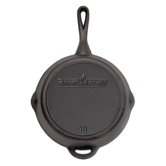 Hoping to build up your cast iron collection, look no further than our classic 10 in cast iron skillet, seasoned with Camp Chef's true seasoned finish so it's ready to go right out of the box. Create the most delicious meals with the 10 in cast iron skillet from bacon and eggs to fresh cinnamon rolls. The comfort-grip handle makes for easy lifting and control and dual pour spouts provide a more convenient cooking experience. You can't go wrong with an essential cast iron skillet like this.