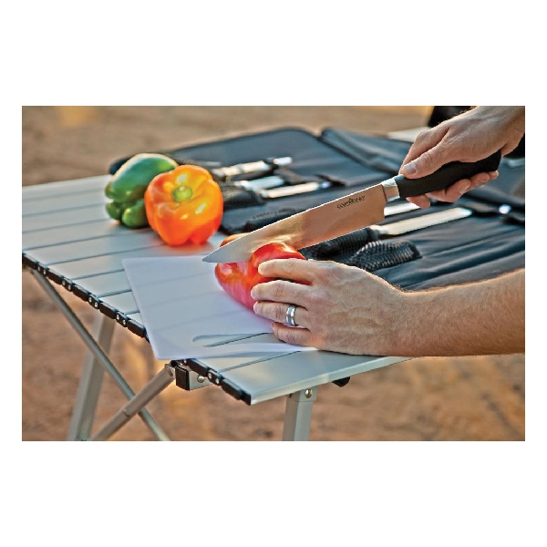 Food preparation can be just as important as cooking the food itself. That is why Camp Chef offers a professional knife set that will help you prepare your food to your liking. The hardened stainless steel blades are made to last while the ergonomically designed rubber handles will give you comfortable control when preparing your meal. Included is a cutting board that will provide you with a clean cutting surface and a convenient carry bag to keep you organized from the kitchen to the campsite. Add the pro knife set for an unmatched prep experience.