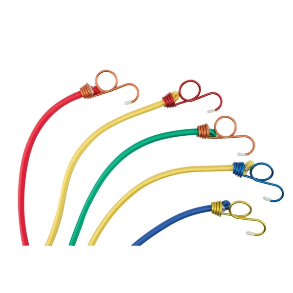 Our new power pull bungey comes in assorted colors along with contrasting colored hooks. The patented hooks feature a pull hook that is much safer them the current hooks we see today. Attach one end of the hook and simply stick you finger into the pull loop stretch and attach. So safe and easy-to-use.