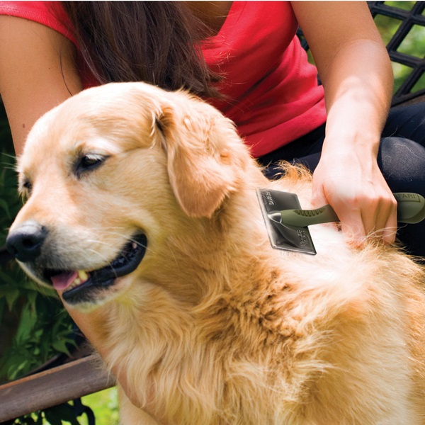 Featuring stainless steel pins, our Safari dog soft slicker brush gently removes mats, tangles and loose hair. With regular use, these high-quality slicker brushes will also reduce shedding for a healthy coat and home. The non-slip grip makes grooming easy.