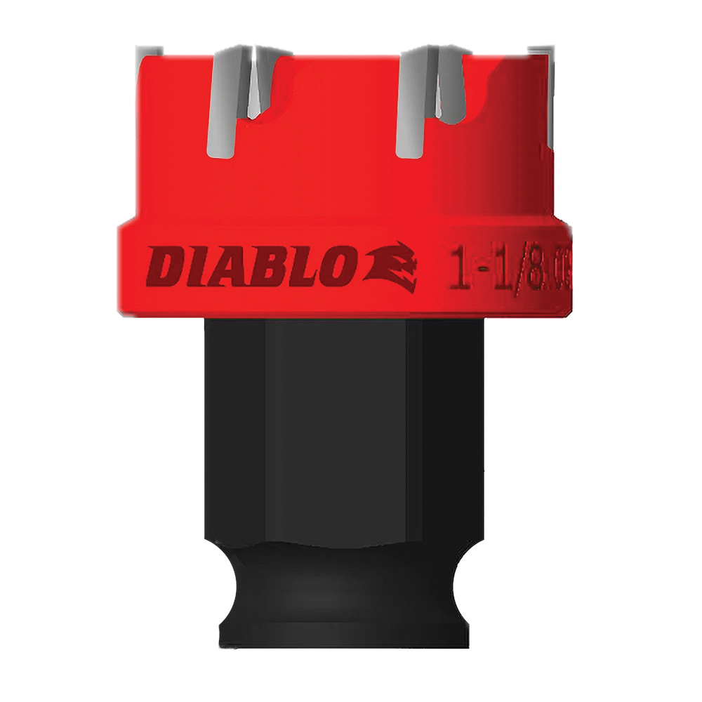 Diablo's high-performance carbide teeth hole cutters deliver 50 times longer cutting life, faster cutting performance and maximum productivity. An optimized carbide tooth geometry provides fast, burr-free holes that require virtually no rework. The depth stop collar maximizes productivity by providing a controlled drilling experience and limiting drilling depth. The combination of a tool-free plug ejection system and spring-loaded plug eject cobalt pilot bit makes plug removal fast and efficient. Diablo's hole cutters are compatible with Diablo's SnapLock™ Plus mandrel resulting in quick, easy and effortless cup changes.