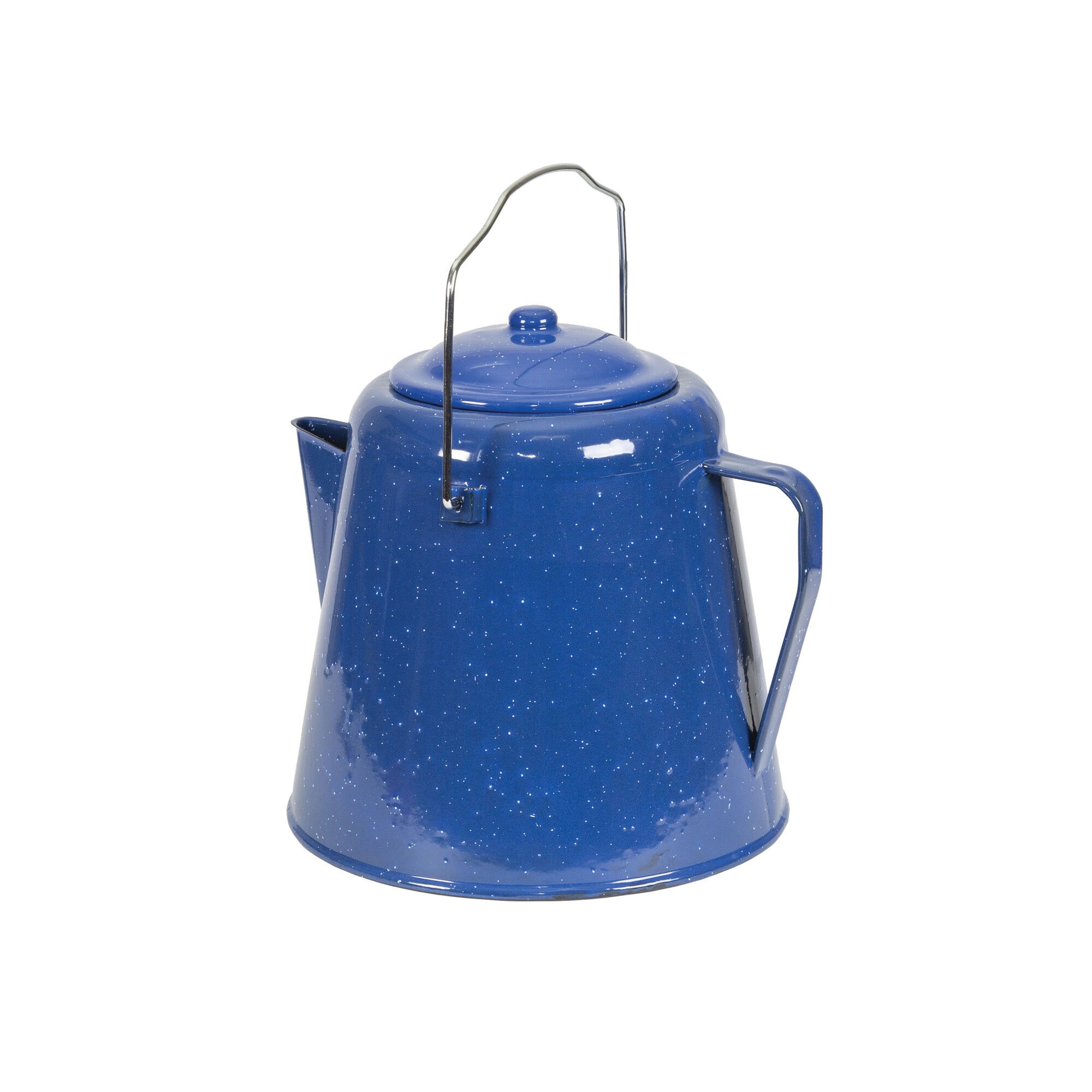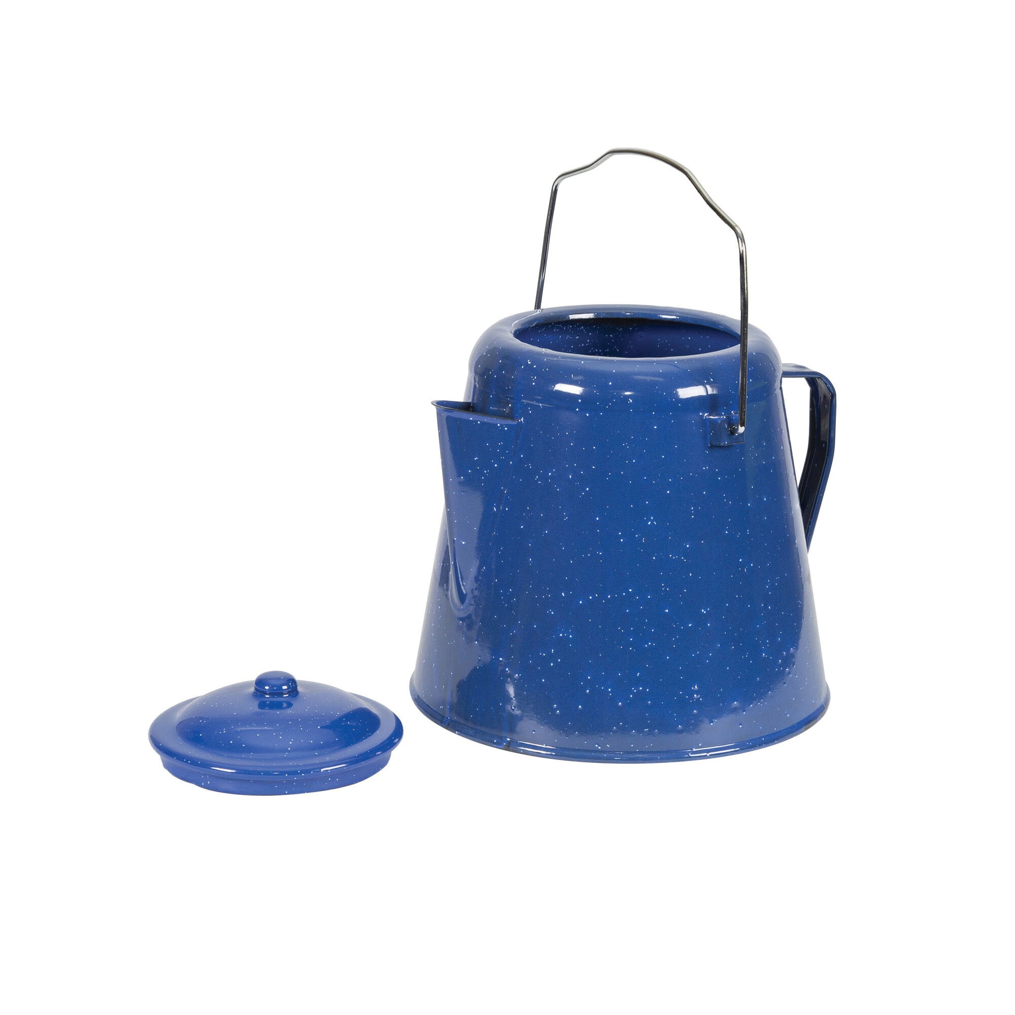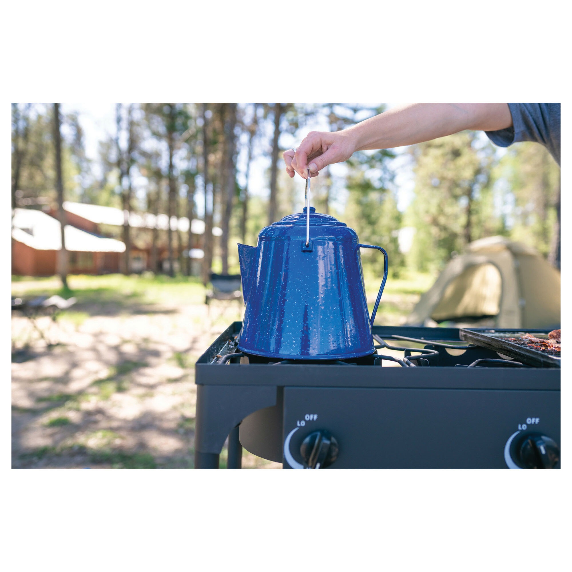 Don't let the outdoors make you give up your morning cup of Joe with our 20 cup coffee pot. With beautiful blue enamel Kiln-hardened to help prevent chips and scratches, this coffee pot is durable and ready to keep you going all trip long.