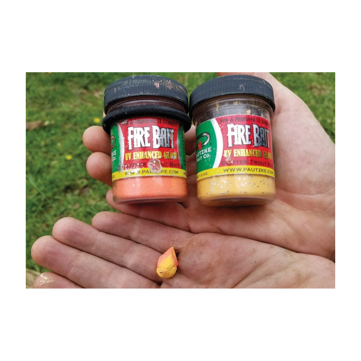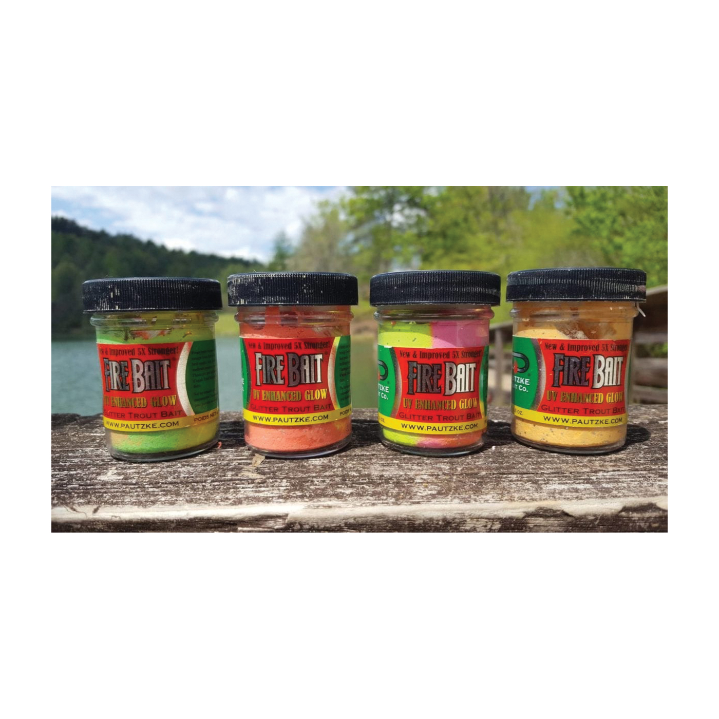 Crafted with the same professional-quality as our traditional and world famous Balls O' Fire® salmon eggs, Pautzke Bait Company is proud to present Fire Bait®, the latest in our new generation of revolutionary trout products. A dough bait, designed to catch trout, Fire Bait® is crammed with cutting edge fishing technology. Its consistency and vibrant colors are guaranteed to produce results and performance that will make it another Pautzke classic. Available in 11 glitter filled colors Fire Bait® is 90% biodegradable and is deadly effective on trout.