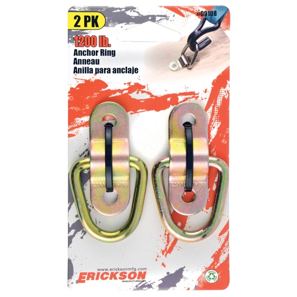 Erickson Anchor, Wire Flip, Specifications: 1200 lb Load Capacity, 2-1/4 in x 3/4 in Mounting Bracket, 1-1/2 in Center Distance on Mounting Holes, 1/4 in Hole in Mounting Bracket, Yellow, Dichromate, Dimensions: 1-1/4 x 1 in